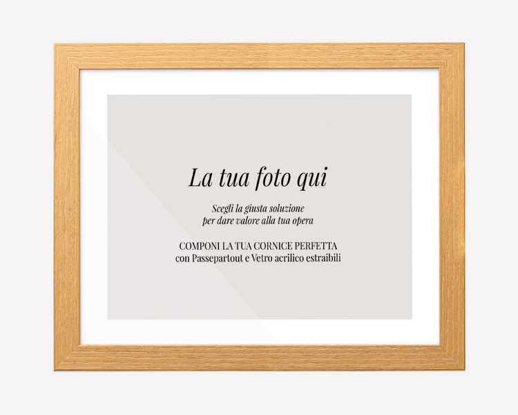 Completa di passepartout e vetro acrilico rimovibili, questa soluzione unisce protezione, design e praticità in un unico prodotto pronto da esporre.