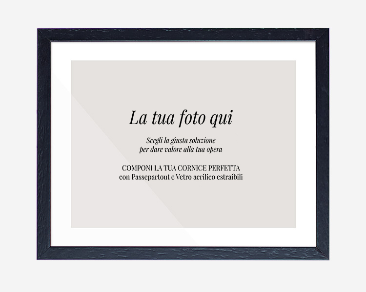 Completa di passepartout e vetro acrilico rimovibili, questa soluzione unisce protezione, design e praticità in un unico prodotto pronto da esporre.