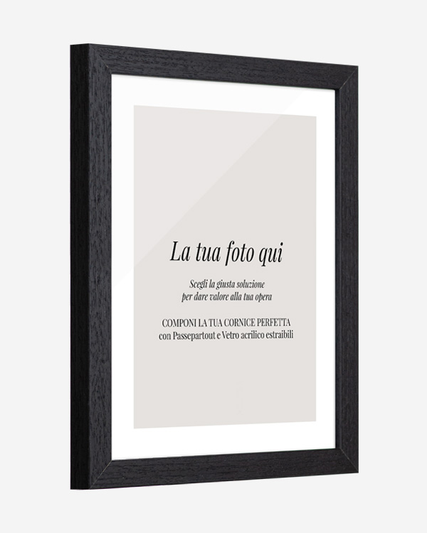 La nostra cornice per foto in legno con passepartout è realizzata con materiali di qualità e una finitura nera opaca che dona carattere e profondità all’immagine.