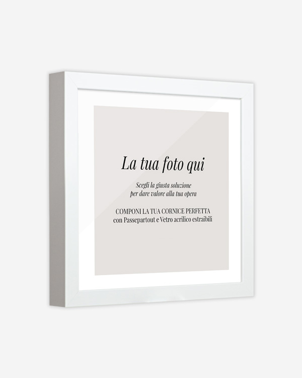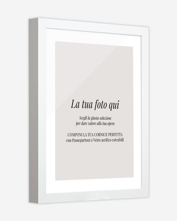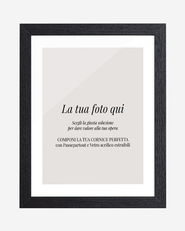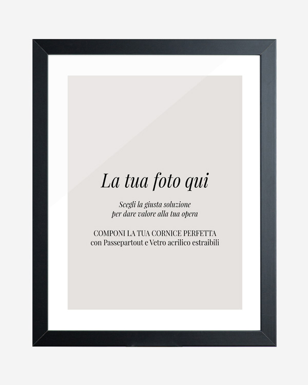 Completa di passepartout e vetro acrilico rimovibili, questa soluzione unisce protezione, design e praticità in un unico prodotto pronto da esporre.