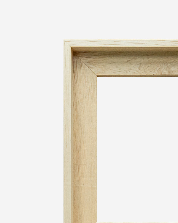 La cornice a cassetta americana (detta anche cornice a “L”) lascia uno spazio tra tela e profilo, creando profondità e leggerezza visiva.