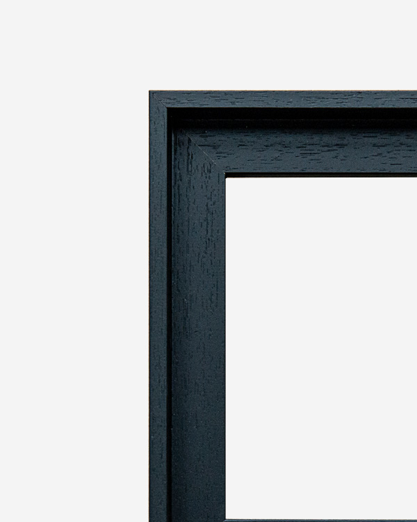 La cornice a cassetta americana (detta anche cornice a “L”) lascia uno spazio tra tela e profilo, creando profondità e leggerezza visiva.