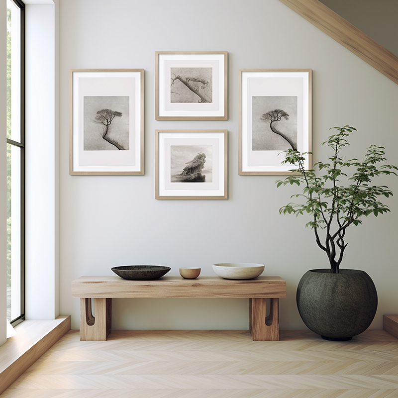 Un insieme di quadri di diverse dimensioni e cornici, studiati per creare composizioni armoniche capaci di valorizzare ogni ambiente, dalla casa agli spazi professionali.